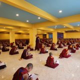 དེ་ཡང་ཚད་མའི་རིགས་སྒྲ་ཆེན་མོ་ནི་སྔོན་གྱི་ཕྱག་སྲོལ་ཇི་བཞིན་༧སྨྲ་བའི་དབང་པོ་སྐྱབས་རྗེ་ཡོངས་འཛིན་སློབ་དཔོན་རིན་པོའི་ཆེའི་བཀའ་སློབ་ལམ་སྟོན་གཞིར་བཟུང་སྟེ། སྤྱི་ལོ་ ༡༩༩༦ ལོའི་བོད་ཟླ་ ༡༠ ནང་དགོན་འདིར་གསར་དུ་འཚོགས་པ་ནས་བཟུང་ད་ལྟའི་བར་ཁྲི་བརྟན་ནོར་བུ་རྩེའི་མཁན་སློབ་དགེ་བའི་བཤེས་གཉེན་རྣམ་པའི་མཐུན་སྦྱོར་འོག་ལོ་ལྟར་ཧོར་ཟླ་བཅུ་པའི་ཚེས་གཅིག་ནས་ཚེས་ཉེར་གཅིག་བར་བཤད་གྲྭ་བའི་ཁོངས་ནས་རྟགས་རིགས་འཛིན་གྲྭའི་ཡན་གྱི་སློབ་གཉེར་ཀུན་ཚད་མའི་རིགས་སྒྲ་ཆེན་མོར་ཞུགས་ཏེ་གཙོ་བོ་རྗེ་རྒྱལ་བ་མཉམ་མེད་པའི་ཆེན་པོ་ཤེས་རབ་རྒྱལ་མཚན་གྱིས་མཛད་པའི་འཕྲུལ་སྒྲོན་རྣམ་ལྔའི་ནང་ཚན་ཚད་མ་རྣམ་འབྱེད་འཕྲུལ་གྱི་སྒྲོན་མེ་དེ་ཉིད་སྦྱོང་བྱ་གཙོ་བོར་བཟུང་ཞིང་། གཞན་ཡང་ཞང་བོད་ཀྱི་གནའ་རབས་ཀྱི་མཁས་གྲུབ་ལོ་པཎ་རྣམ་པས་མཛད་པའི་ཚད་མ་རིག་པའི་གཞུང་ལུགས་རྣམས་ཀྱི་ཟུར་བརྒྱན་ཏེ་ཁྱོན་བདུན་ཕྲག་གསུམ་གྱི་རིང་དཔེ་ཁྲིད་དང་རྩོད་པ། དམ་བཅའ་དང་ཐུག་ཆེན་ནང་སྦྱོང་བཅས་སུ་ཚད་མ་རིག་པར་ཐོས་བསམ་གང་ལེགས་གནང་བཞིན་ཡོད། དཔེ་འཁྲིད་སྐབས་ཁྲི་བརྟན་ནོར་བུ་རྩེའི་དཔོན་སློབ་རིན་པོ་ཆེ་དང་། སྒྲུབ་གྲྭ་མཁན་རིན་པོ་ཆེ། བཤད་གྲྭའི་རྒན་ལགས་བཅས་ཀྱི་མདུན་ནས་བཤད་གྲྭ་བ་རྣམས་སྡེ་ཚན་ཆ་དགོས་ཀྱི་དཔེ་ཁྲིད་ཞུ་བཞིན་ཡོད། དེ་ཡང་ཉིན་ལྟར་སྔ་དྲོའི་ཕྱག་ཚོད་བརྒྱད་པ་ནས་དབུ་བཙུགས་ཏེ་འཆད་རར་ཆུ་ཚོད་གཉིས་རིང་རྩོད་སྦྱོང་གནང་རྒྱུ་དང་། དེ་ཕྱག་ཚོད་བཅུ་པ་ནས་བཅུ་གཅིག་བར་དཔེ་ཁྲིད་ཞུ་རྒྱུ། བཅུ་གཅིག་ནས་བཅུ་གཉིས་བར་ནང་སྦྱོང་། ཉིན་རྒྱབ་ཕྱག་ཚོད་དང་པོ་དང་ཕྱེད་ཀ་ནས་གསུམ་པའི་བར་འཆད་རར་རྩོད་སྦྱོང་། གསུམ་དང་ཕྱེད་ཀ་ནས་ལྔ་པའི་བར་ནང་སྦྱོང་། ལྔ་པ་ནས་བརྒྱད་པའི་བར་དམ་བཅའ་འཚོགས་རྒྱུ་དང་ཉིན་བཞི་རེའི་མཚམས་ནས་ཐུག་ཆེན་ཐེངས་བཞི་རེ་འཚོགས་བཞིན་ཡོད།