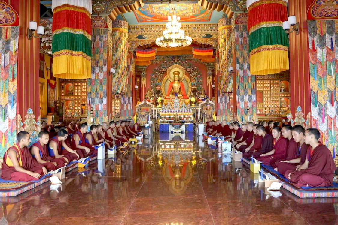 གདན་ས་ཁྲི་བརྟན་ནོར་བུ་རྩེར་གཤེན་གྱི་དཀའ་ཐུབ་ཆེན་མོ་འཚོགས་བཞིན་པ།