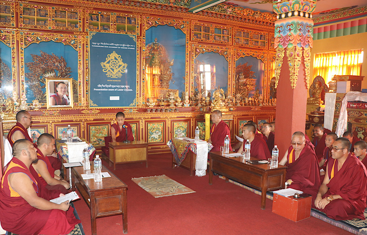 གཡུང་དྲུང་བོན་གྱི་ཆེས་མཐོའི་གཙུག་ལག་སློབ་གཉེར་ཁང་གི་སྐབས་ཉེར་བདུན་པའི་བཤད་སྒྲུབ་འདུས་སྡེས་གོ་སྒྲིག་འོག ཕྱི་ལོ་ ༢༠༢༡ ༦ ༣ ཉིན་གྱི་སྔ་དྲོའི་ཆོུད་ ༨ ཐོག་ནས་བཟུང་བོད་ཀྱི་སྐད་ཡིག་ཡར་སྐུལ་ཆེད་དུ་ཐེངས་བདུན་པའི་འཛིན་རིམ་འོག་མའི་གཏམ་བཤད་འགྲན་བསྡུར་ལས་རིམ་འགོ་བཙུགས་ཏེ། དཔྱད་འདེམས་དགེ་རྒན་དུ་ཆེད་ཕེབས་གནང་བའི། སྐྱབས་རྗེ་སྒྲུབ་གྲྭའི་མཁན་རིན་པོ་ཆེ་མཆོག་དང་། བཤད་སྒྲུབ་སློབ་དཔོན་རིན་པོ་ཆེ། རྩ་འཛིན་སློབ་དཔོན་རྣམ་པ་གསུམ་དང་།  སྐབས་ ༢༧ པའི་བཤད་སྒྲུབ་འདུས་སྡེའི་ལས་སྣེ་ལྷན་འཛོམས་ཐོག དགེ་སྐོས་ལགས་ནས་དབུ་འཛུགས་གཏམ་བཤད་གནང་བ་དང་འབྲེལ། བཤད་སྒྲུབ་འདུས་སྡེའི་ཚོགས་གཙོ་ལགས་ནས་ས་དུས་ཚོད་སྟངས་འཛིན་འོག སྐབས་ ༢༧ པའི་བཤད་སྒྲུབ་འདུས་སྡེ་ནས་བརྗོད་གཞི་གཏན་འབེབས་གནང་བའི་བོན་གྱི་གདན་ས་ཁག་གི་ལོ་རྒྱུས་སྐོར་དང་། བཤེས་གཉེན་བསྟེན་ཚུལ་སྐོར། སློབ་མ་ལ་ཚང་དགོས་པའི་ཡོན་ཏན།དགོན་སྡེའི་སྒྲིག་ལམ་སྐོར། དགེ་བཤེས་མཛད་སྒོ་ཡི་མཛད་རིམ་སྐོར། དུས་ཆེན་ཁག་གི་ངོ་སྤྲོད་སྐོར། སློབ་ཕྲུག་དང་འབྲེལ་བའི་བསླབ་བྱ་སྐོར་བཅས་བརྗོད་གཞི་དུ་མར་གཏན་འབེབས་གནང་བ་ལས་སོ་སོས་གདམས་པའི་བརྗོད་གཞིའི་ཐོག་ནས། ཐེག་འགྲེལ་འཛིན་གྲྭ་ནས་བཟུང་། ཚད་མ་ལོ་རིམ་གསུམ་པ། ཚད་མ་ལོ་རིམ་གཉིས་པ། ཚད་མ་ལོ་རིམ་དང་པོ་བཅས་ནས་རིམ་བཞིན་གཏམ་བཤད་སྐར་མ་བཅུ་རེ་གནང་རྗེས་སྐར་མ་ལྔ་ལ་དྲི་བ་དྲི་ལན་བྱས་པ་དང་། གཏམ་བཤད་སྐབས་བཤད་ཐབས་ཀྱི་གོ་རིམ་དང་ཚིག་སྦྱོར། ཐ་སྙད་བེད་སྤྱོད་བྱེད་སྟངས་ལུས་ཀྱི་རྣམ་འགྱུར་དྲི་བ་ལན་འདེབས་སྟངས་ལས་དཔག་པའི་ཨང་རིམ་སྤྲད་དེ་བརྒྱ་ཆའི་ཨང་ཐོབ་ལོ་འཁོར་མཇུག་བསྡོམས་ལ་གསལ་བསྒྲགས་བྱེད་རྒྱུ་ཡིན་པ་དང་། ཉིན་གཉིས་ཀྱི་རིང་གཏམ་བཤད་འགྲན་བསྡུར་གནང་གྲུབ་པ་དང་། སྐྱབས་རྗེ་སྒྲུབ་གྲྭའི་མཁན་རིན་པོ་ཆེ་ནས་དགེ་འདོན་སྐྱོན་སེལ་གྱི་མཇུག་བསྡོམས་བཀའ་སློབ་གནང་གྲུབ་རྗེས་མཉམ་པར་བསྒྲོན་པ་དང་། ཕྱི་ལོ་ ༢༠༢༡ ༦ ༤ ཉིན་གྱི་ཕྱི་དྲོའི་ཕྱག་ཚོད་ ༤། ༣༠ ཐོག་གཏམ་བཤད་འགྲན་བསྡུར་དེ་ཉིད་མཇུག་གྲུབ་པ་བཅས་ཀྱི་གནས་བསྡུས་སུ།