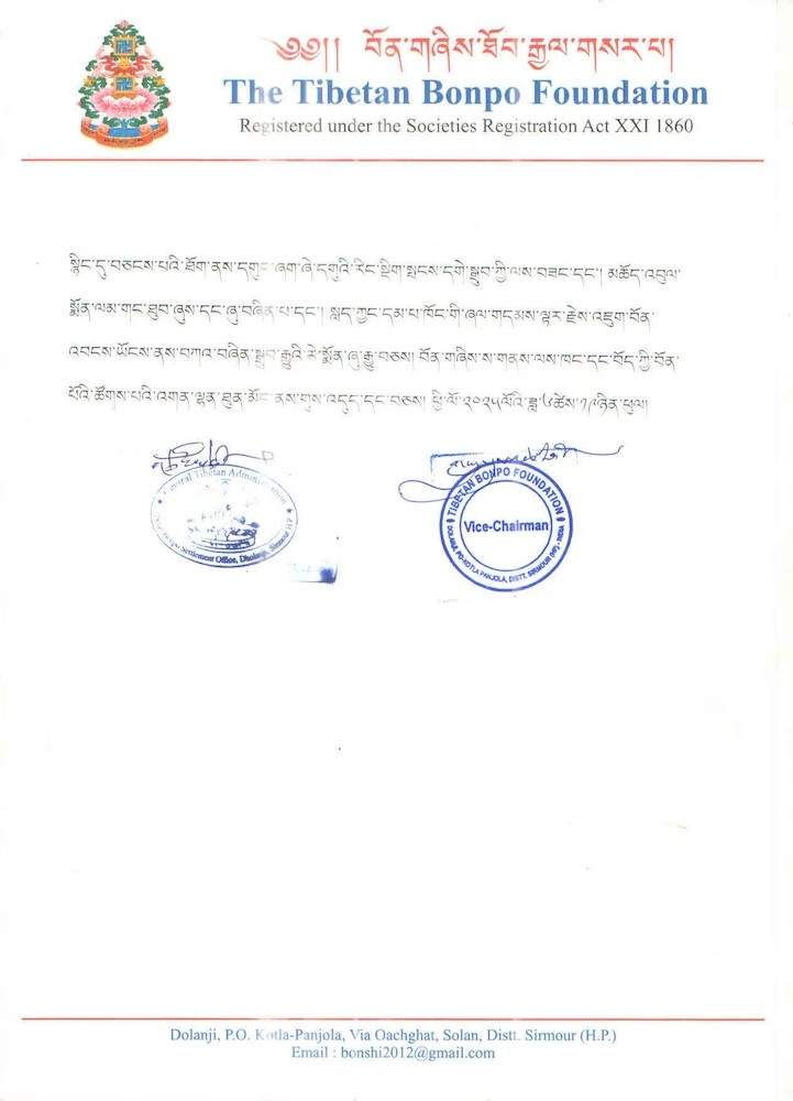 མངའ་གསལ་བཞིན་རང་ཅག་བོན་འབངས་རྣམས་ལ་བཀའ་དྲིན་གཞལ་ཟླ་བྲལ་བའི་༧སྐྱབས་རྗེ་༧ཡོངས་འཛིན་སྨྲ་བའི་དབང་པོ་མཆོག་ཕྱི་ལོ་༢༠༢༥ཟླ་༦ཚེས་༡༢རེས་གཟའ་ཕུར་བུའི་སྔ་དྲོར་གདུལ་བྱ་རྟག་འཛིན་ཅན་རྣམས་ལ་སུན་ཕྱུང་བའི་ཕྱིར་སྐུ་མི་རྟག་མྱ་ངན་ལས་འདས་ཚུལ་བསྟན་ཏེ། དགོངས་པ་གཞན་དོན་གཤེགས་པའི་ཡིད་སྐྱོའི་གནས་ཚུལ་ཐོས་པར་རང་རེ་བོན་འབངས་རྣམས་ལྟ་ཅི། རིས་མེད་ཀྱི་སྐྱེ་བོ་མང་དག་ཞིག་ལའང་ཕུགས་ཕམ་ཚད་མེད་བྱུང་ཡོད། ༧སྐྱབས་རྗེ་དམ་པ་ཁོང་ནི་རང་ཅག་བོད་ས་ཤོར་ནས་གཞན་གྱི་ཡུལ་དུ་བཙན་བྱོལ་དུ་འགྱར་དགོས་གྱར་དགོས་བྱུང་སྟེ། རང་གི་ཆོས་དང་རིག་གཞུང་ཕར་ཞོགས་ཟས་མལ་གནས་གསུམ་ལའང་དཀའ་ངལ་ཚད་མེད་འཕྲད་པའི་སྐབས་སུ། གཡུང་དྲུང་བོན་ལུགས་འཛིན་པ་རྣམས་བསྡུ་རུབ་ཀྱིས་༼ བོད་ཀྱི་བོན་པོའི་ཚོགས་པ་ ༽ཞེས་གསར་འཛུགས་གནང་སྟེ། མི་མང་གི་འཚོ་རྟེན་དང་། མདོ་སྔགས་སེམས་གསུམ་གྱི་བསྟན་པ་འཛིན་སྐྱོང་སྤེལ་གསུམ་གནང་སའི་བཤད་སྒྲུབ་ཀྱི་བསྟི་གནས་བཅས་ཀྱི་ཆེད་གཞིས་ས་སྤུས་གཟིགས་ཀྱིས་བོན་གཞིས་ཐོབ་རྒྱལ་གསར་པ་མིང་འཁོད་གསར་འཛུགས་གནང་བ་ལ་བརྟེན་ནས།