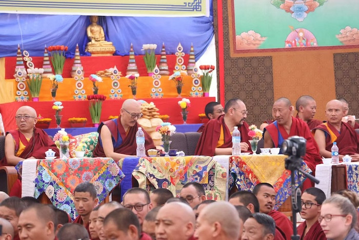 བོན་སྡེ་ལྷན་འཛོམས་སྤྲོ་ཚོགས་ཐེངས་བདུན་པ་འདི་ཉིད་གཡུང་དྲུང་བོན་གྱི་བསྟན་པའི་སྲོག་ཤིང་༧སྐྱབས་རྗེ་ཡོངས་འཛིན་སྨྲ་བའི་དབང་པོ་མཆོག་གི་བརྒྱ་སྟོན་བརྟན་བཞུགས་དང་། ༧དཔལ་ལྡན་ཁྲི་བརྟན་ནོར་བུ་རྩེའི་གཙུག་ལག་ཁང་གསར་པའི་རབ་གནས་དང་དབུ་འབྱེད་མཛད་སྒོ་བཅས་གལ་ཆེའི་མཛད་སྒོ་མང་པོ་མུ་འབྲེལ་སྐྱོང་བའི་ལོ་འགོའི་ཟླ་བ་ཞིག་ཆགས་ཡོད། སྤྱིར་མཛད་སྒོ་འདི་ཉིད་ཕྱི་ལོ་༢༠༡༧ནས་བོན་པོ་ཚོགས་པ་དང་། གདན་ས་༧དཔལ་ལྡན་ཁྲི་བརྟན་ནོར་བུ་རྩེའི་འདུས་སྤྱི་གཉིས་ནས་ཐུགས་འགན་བཞེས་ཏེ་དབུ་འཛུགས་ཞུས་པ་དང་། དེ་ནས་ད་བར་མུ་འབྲེལ་རྒྱུན་བསྐྱངས་ནས་གྲ་རྒྱས་ཕུན་སུམ་ཚོགས་པ་བྱུང་བ་ཞིག་རེད། དེ་རིང་གི་མཛད་སྒོའི་མཛད་རིམ་སྔ་དྲོ་ཆུ་ཚོད་དགུ་པ་ནས་དབུ་འཛུགས་ཞུས་ཏེ། སྐྱ་སེར་མི་མང་རྣམས་མཛད་སྒོའི་ཚོམས་གུར་དུ་རྒྱས་འཛོམས་གནང་བ་དང་དེ་ནས་བསང་གསོལ་དང་ལྷ་རྒྱལ་འཐེན། དེའི་རྗེས་༧སྐྱབས་རྗེ་མཁན་སློབ་རྣམ་གཉིས་ཀྱི་གསོལ་འདེབས་དབྱངས་སུ་བསྐྱོན་པ་དང་། བསྟན་རྒྱས་སྨོན་ལམ་གསུང་བཞིན་བོན་གྱི་བརྡ་དར་ཆེན་མོ་མཁའ་དབྱིངས་སུ་བསྒྲེངས། བླ་གྲྭ་མི་མང་རྣམས་བཞུགས་གདན་དུ་འཁོད་རྗེས་༧དཔལ་ལྡན་ཁྲི་བརྟན་ནོར་བུ་རྩེའི་དྲུང་ཆེ་དང་། བོན་པོ་ཚོགས་པའི་དྲུང་ཆེ་གཉིས་ནས་རིམ་པས་བོད་སྐད་དང་། བལ་སྐད་ཐོག་ནས་ཕེབས་བསུའི་འཚམས་འདྲི་ཞུས། དེ་ནས་༧སྐྱབས་རྗེ་མཁན་ཆེན་ལུང་རྟོགས་བསྟན་པ་གཡུང་དྲུང་མཆོག་གིས་བོད་བལ་དབྱིན་གསུམ་གྱི་སྐད་ཐོག་ནས་ལུགས་རྙིང་ལོ་གསར་དང་འབྲེལ་བའི་གསུང་བཤད་བཀའ་དྲིན་ཆེ་བ་བསྩལ། དེ་མུས་ཤེལ་ཕུགས་སུམ་མདོ་གྲོང་སྡེ་ལྷན་ཁང་གི་སྤྱི་ཁྱབ་དབུ་འཛིན་ཟླ་བ་བསམ་འགྲུབ་ལགས་ནས་བོད་བལ་སྐད་གཉིས་ཐོག་ནས་མཛད་སྒོ་དང་འབྲེལ་བའི་གསུང་བཤད་དང་ལྷན་མི་མང་རྣམས་ལ་བརྒྱ་སྟོན་སྲུང་བརྩིའི་དགེ་བསྐུལ་ཞུས། དེའི་རྗེས་ཚོགས་སྡེ་དང་སློབ་ཕྲུག་སྡེ་ཁག་སྟེ། ཏ་པི་ཧྲི་ཙའི་སློབ་གྲྭ་དང་། སྐྲེ་བ་ཞང་ཞུང་རིག་གནས་མཐུན་ཚོགས། གསོ་རིག་འབུམ་བཞིའི་སློབ་གྲྭ། ནོར་འཛིན་གླིང་ལྷ་མོ་རུ་ཁག ཏ་པི་ཧྲི་ཙའི་སློབ་ཟུར་ཚོགས་པ། དོལ་པོ་བྱི་གཅེར་རིག་གཞུང་སྡེ་ཁག ཁྱུང་པོ་ན་གཞོན་ཚོགས་པ། དོལ་པོ་ཚྭ་གའི་སློབ་གྲྭ། ཕྱྭ་སྲས་ཀེང་རྩེའི་སློབ་གྲྭ། བྱི་གཅེར་སྨུག་པོ་རོང་རིག་གཞུང་སྡེ་ཁག ནོར་འཛིན་གླིང་གཞོན་ནུ་ལྷན་ཚོགས་བཅས་ཁྱོན་ཚོགས་སྡེ་འདྲ་མིན་བཅུ་གཅིག་དང་མི་སྒེར་པ་བཅས་ནས་བོད་གཞས་དང་། བལ་གཞས། རྒྱ་གར་གཞས་བཅས་གཞས་སྣ་སུམ་ཅུ་སོ་གཉིས་ཙམ་གཟིགས་འབུལ་གནང་བ་ཡོད་པ་རེད། དེའི་རིང་སྔ་ཕྱི་དྲོ་དུས་གསུམ་ལ་གསོལ་ཇ་དང་བཞེས་ལག་སོགས་གཟབ་རྒྱས་གནང་ནས་འཛམ་གླིང་ཤར་ནུབ་གང་ས་ནས་ཕེབས་པའི་སྐུ་མགྲོན་རྣམས་དང་ལྷན་སྤྲོ་ཚོགས་མཉམ་རོལ་ཞུས་པ